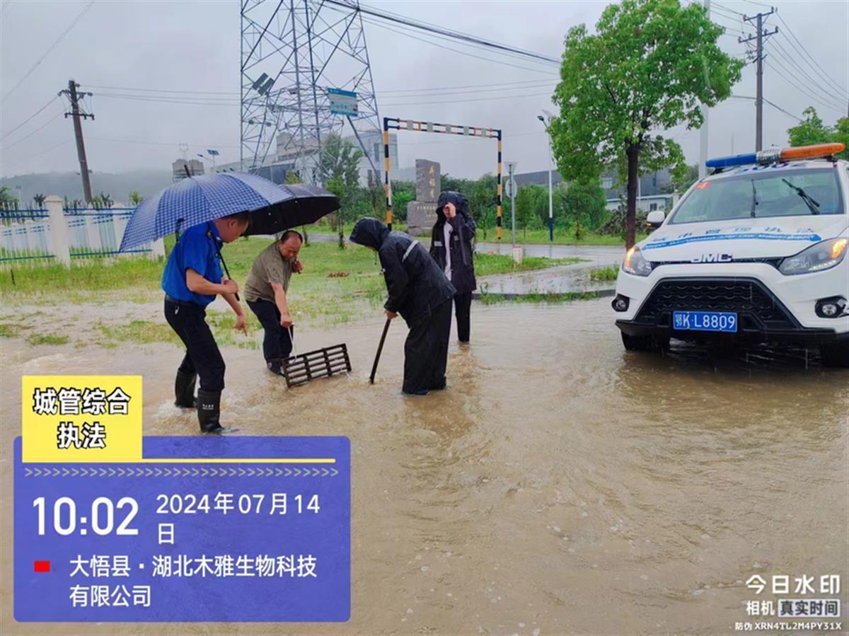 大悟县城市管理执法局150余人组成七个应急工作专班,按照定人、定路段、定岗、定责任“四定”对城区内防汛排涝进行巡查防控,发现易涝点位23处,配备移动强排设施设备11台排水泵,加装吸水设备车辆7台,对易涝点积水进行抽排工作,清理堵塞点50余处,对河道、临水、积水区域设置警示标志30余处,提醒过往行人、车辆注意安全,选择安全线路绕行。