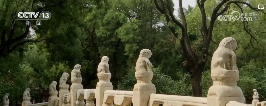 断虹桥桥面铺砌汉白玉巨石,两侧石栏板雕穿花龙纹图案,用料考究、装饰精美,展现出极高的营造水准和工艺水平。望柱上神态各异的小狮子们引得众多游客拍照打卡。