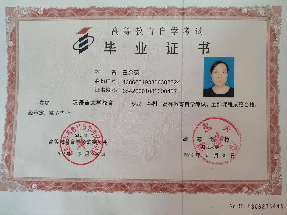 从事教师职业后,为系统学习教育理论知识,她又利用工作的空闲时间,继续报名参加自考,最终取得湖北大学的汉语言文学教育本科毕业证书。