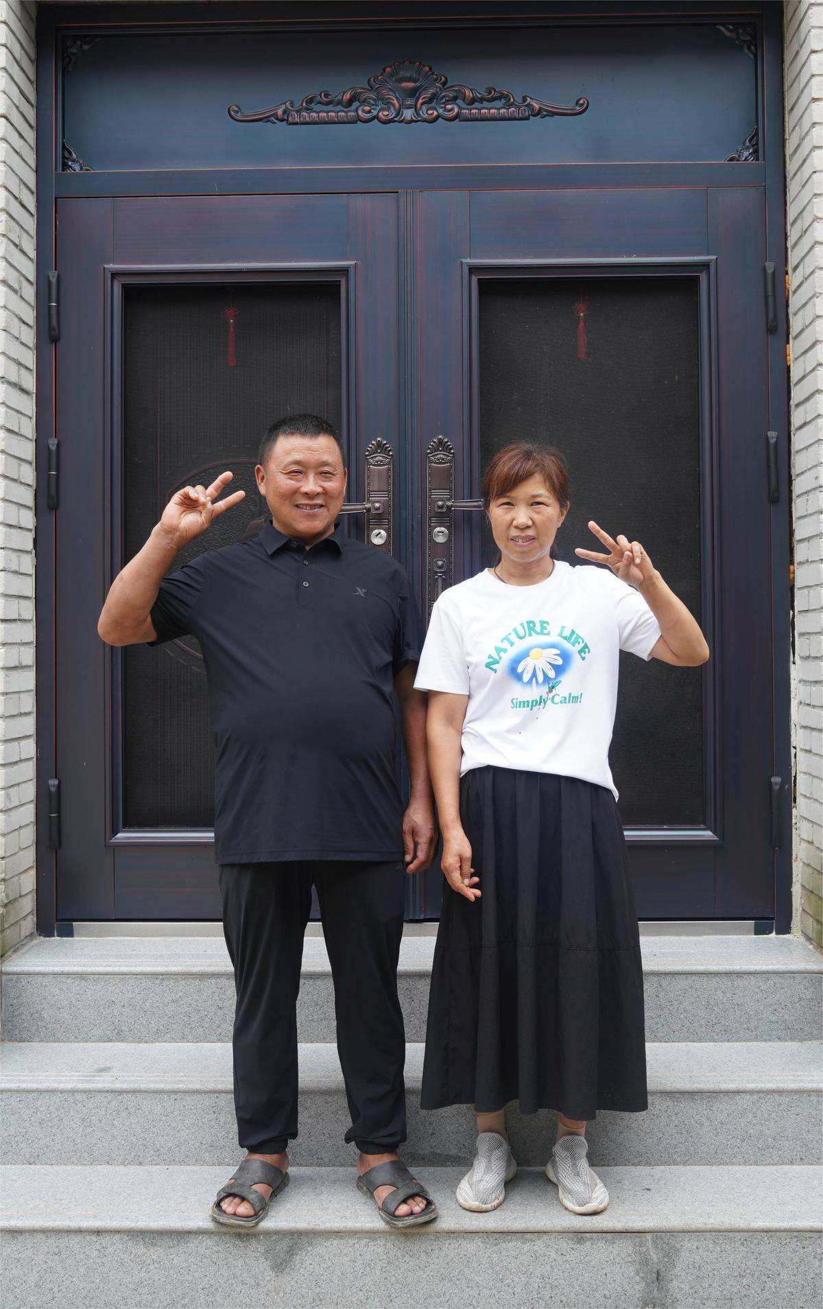 7月13日,崔国甫和杨菊香在“菊香餐馆”农家乐门前合影。 (湖北日报全媒记者 赵峰 赵怡然 摄)