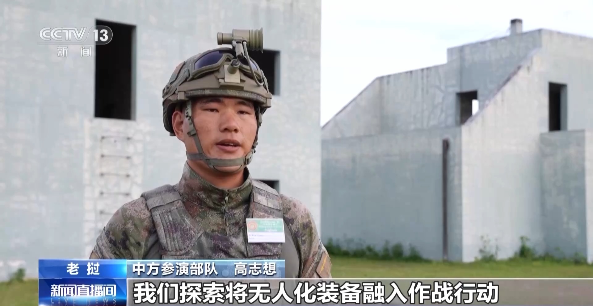 中方参演部队 高志想:我们探索将无人化装备融入作战行动,大大提升了特战小队的战场感知和火力打击能力,在降低人员受伤风险的前提下,顺利完成营救任务。