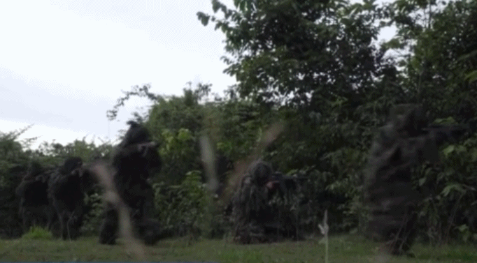 空中突击队利用察打一体无人机进行侦察和精准狙杀。中老混编的空中突击队向预定地域机动,到达任务区,中方特种兵位楼顶实施快速索降,老方特种兵机降后快速展开地面封控。中老采取上下联动的方式,运用机器狗火力突击,掩护特战队员实施营救行动。