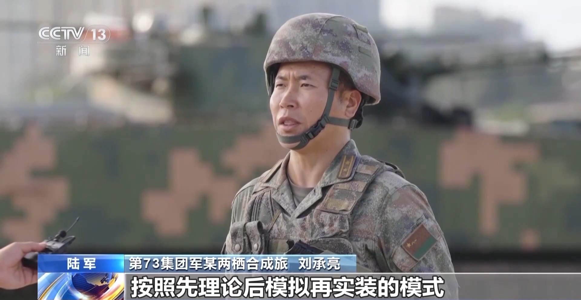 第73集团军某两栖合成旅 刘承亮:我们按照先理论后模拟再实装的模式,层层过关升级,让官兵一步一个脚印,逐步打牢海上作战能力基础。同时,不断强化车组协同训练,提升指挥、协同、保障等多方面作战能力。