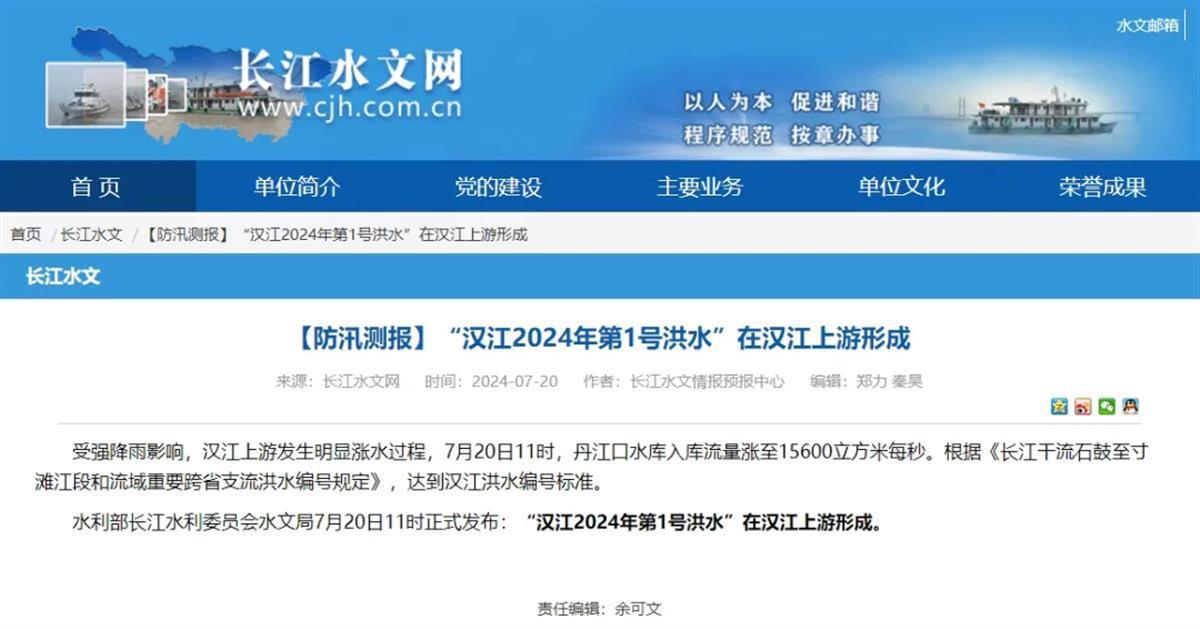 水利部长江水利委员会水文局7月20日11时正式发布:“汉江2024年第1号洪水”在汉江上游形成。