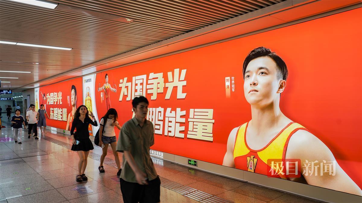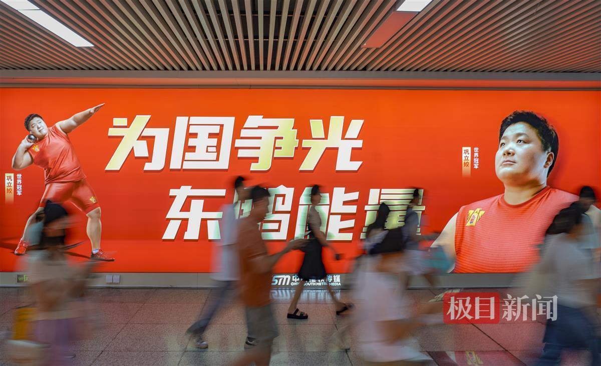 在地铁武昌街道口站内,中国奥运健儿刘洋、巩立姣、谢震亚等人的形象广告,彰显着中国奥运健儿努力拼搏的精神、绽放着胜利的笑容,为武汉增添了活力和生机。