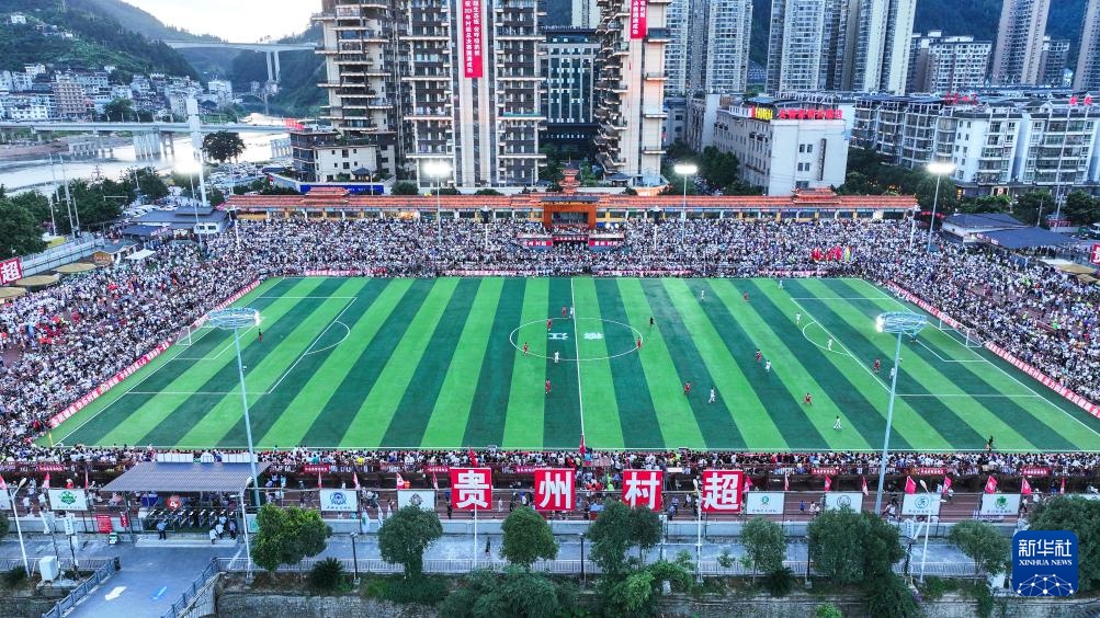 这是2024年贵州“村超”总决赛现场(7月20日摄,无人机照片)。新华社记者 杨文斌 摄