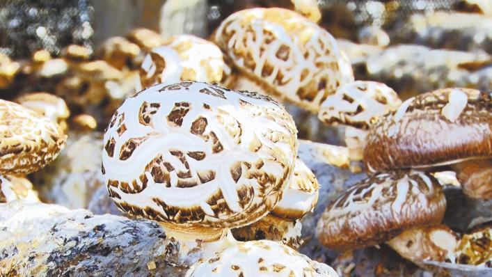 郝店镇关店村产出的花菇,纹如刀刻,朵朵开花。(湖北日报通讯员 张哲傲涵 摄)