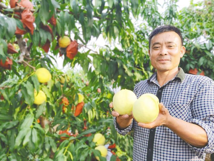 郝店镇铁城村共享桃园里的“秋雪”桃,口感脆甜。(湖北日报通讯员 李端 摄)