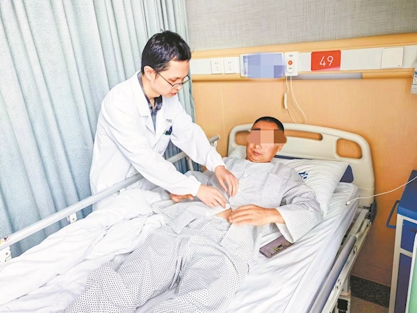 主治医师文阳为王先生检查雷击伤患处 通讯员彭夏丽摄