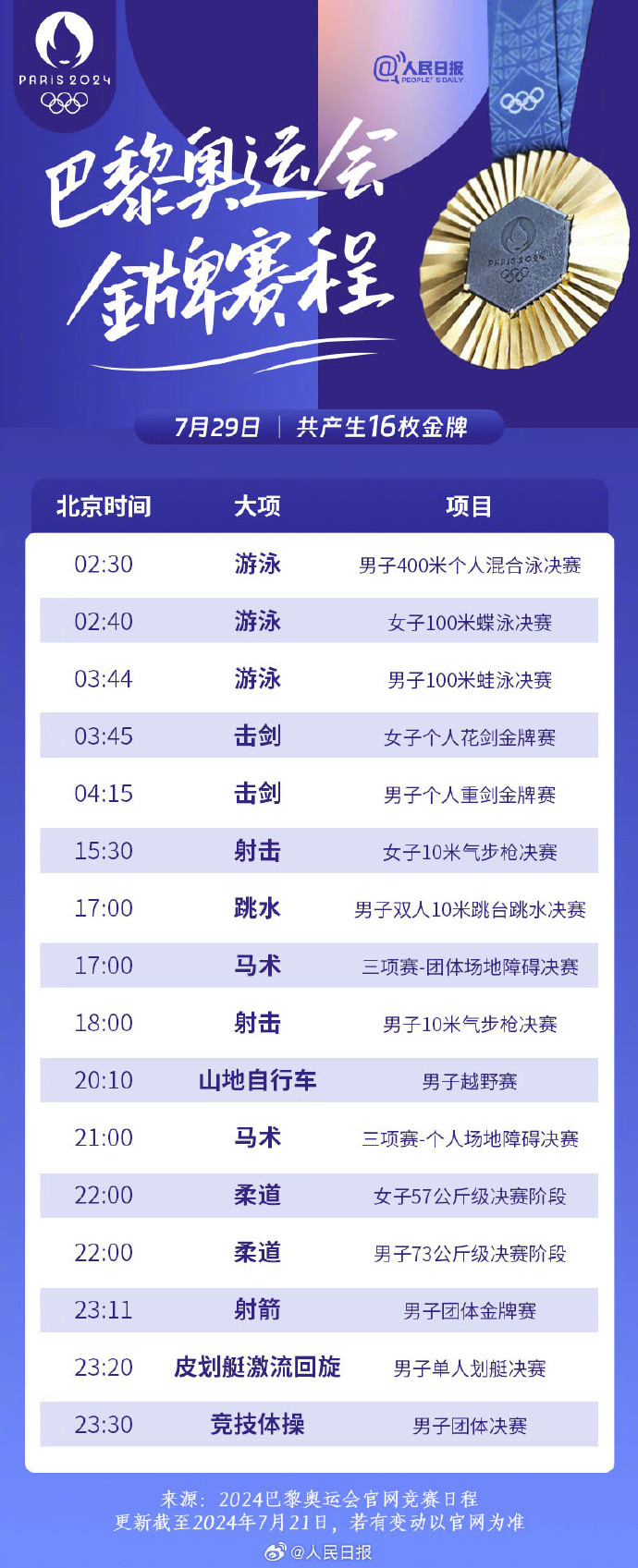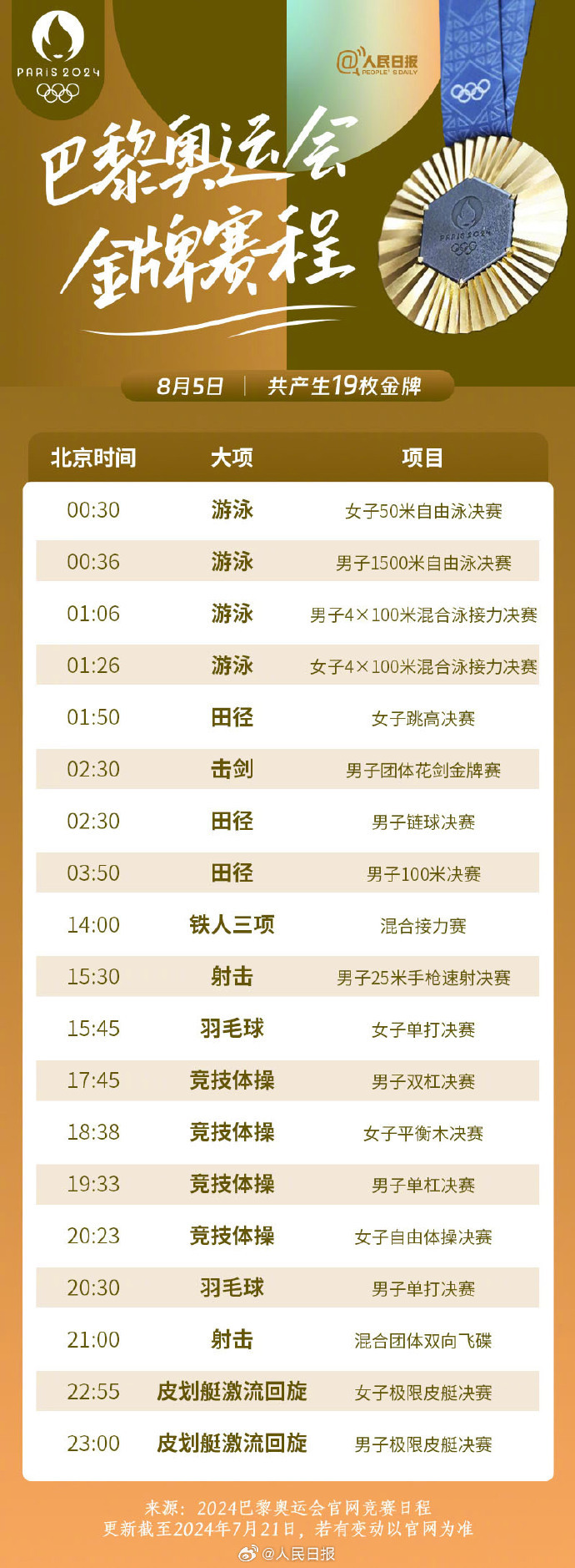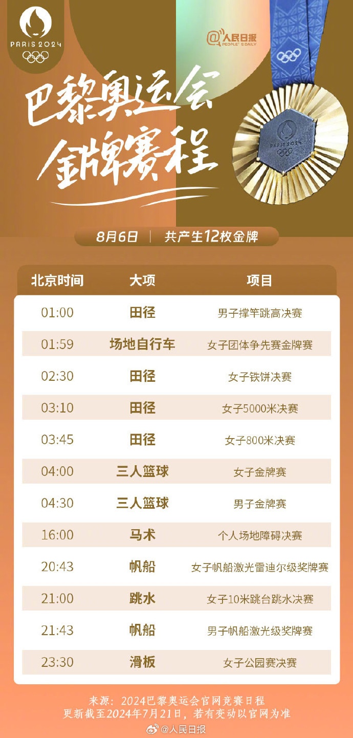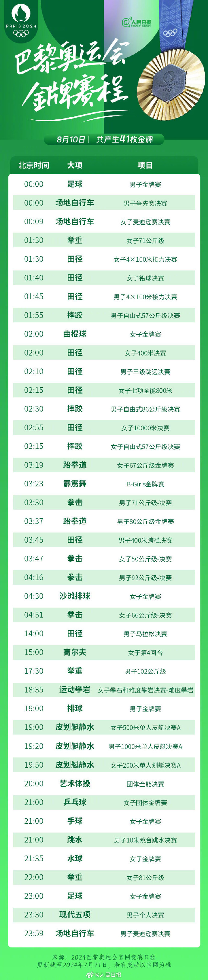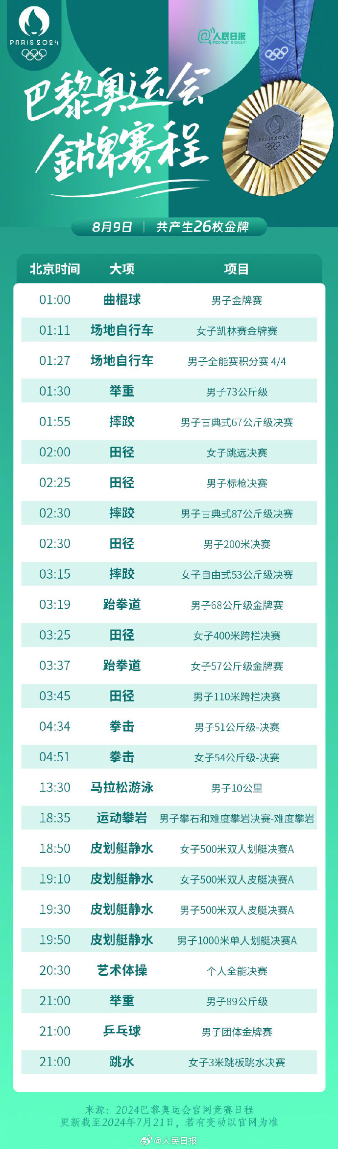 北京时间7月27日凌晨,巴黎奥运会将拉开帷幕。有哪些金牌赛事不容错过?你关注的赛事将在什么时候产生金牌?巴黎奥运哪些金牌赛不用熬夜看?收好巴黎奥运会金牌赛事日历↓↓观赛必备,一起为中国奥运健儿加油!