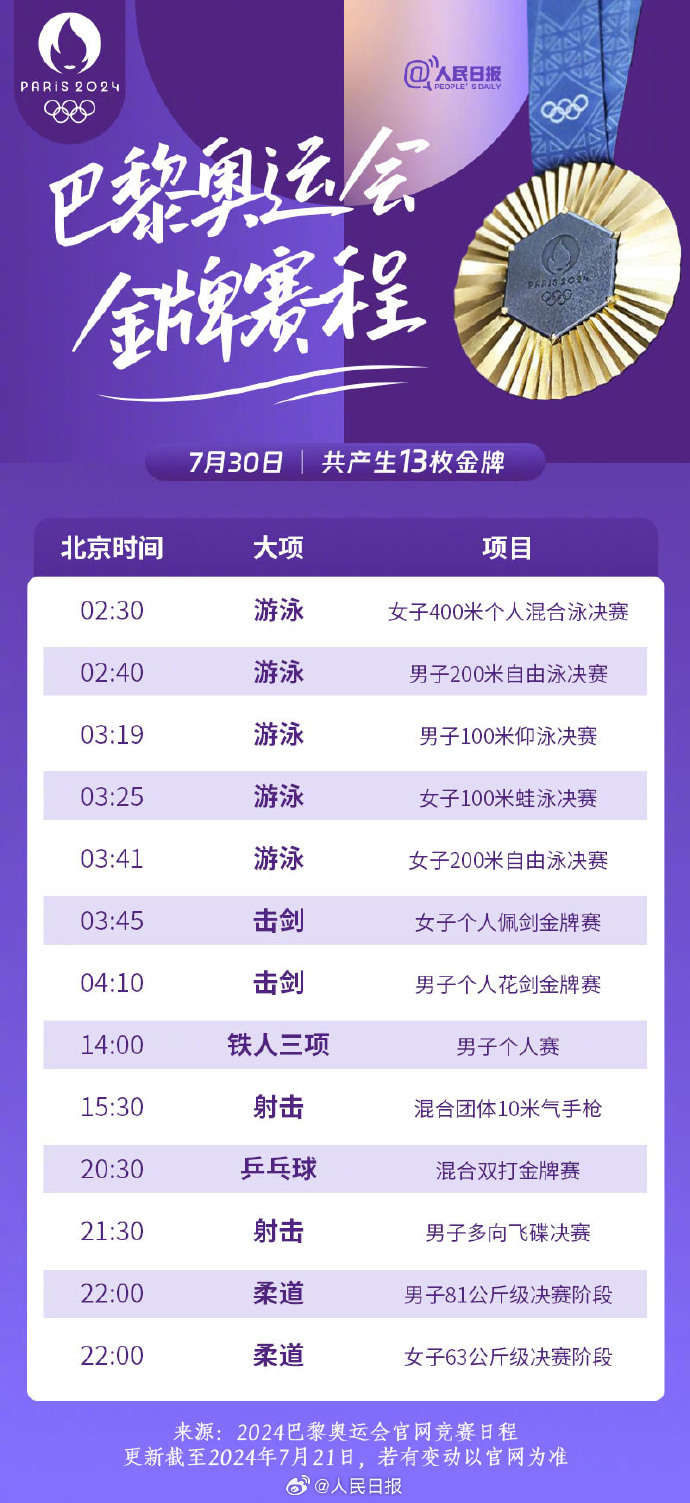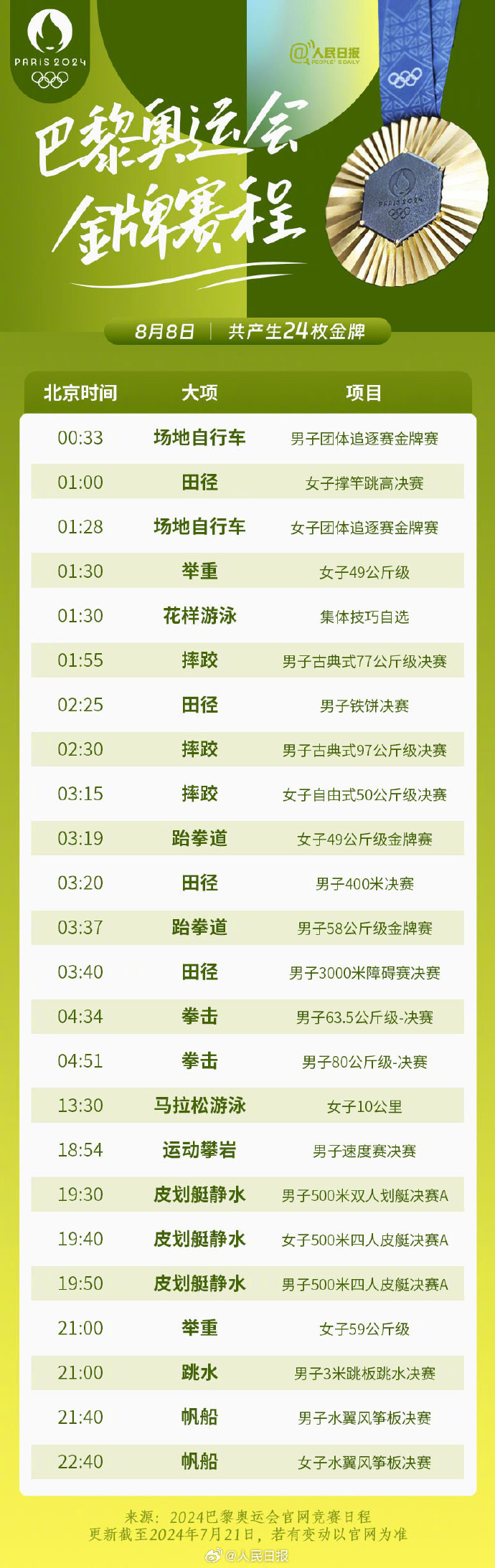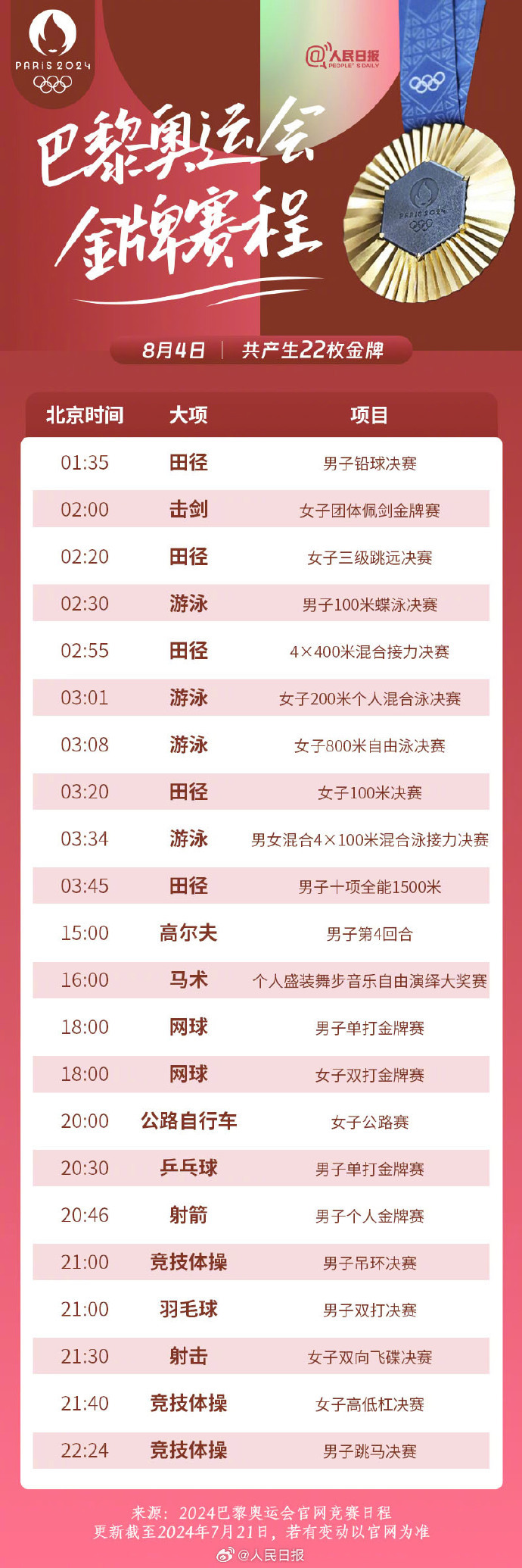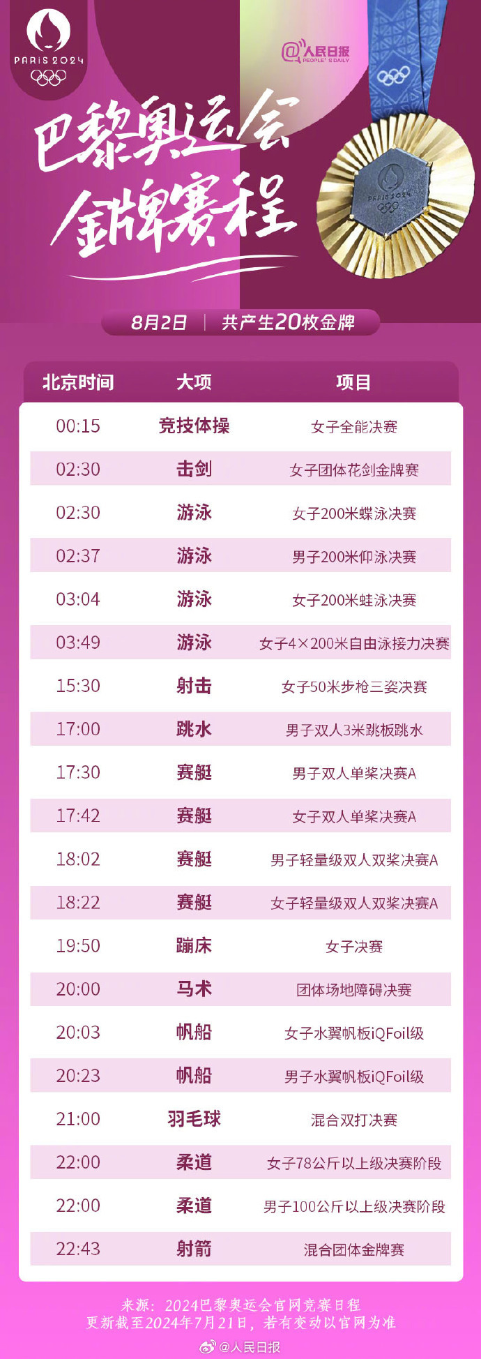 北京时间7月27日凌晨,巴黎奥运会将拉开帷幕。有哪些金牌赛事不容错过?你关注的赛事将在什么时候产生金牌?巴黎奥运哪些金牌赛不用熬夜看?收好巴黎奥运会金牌赛事日历↓↓观赛必备,一起为中国奥运健儿加油!