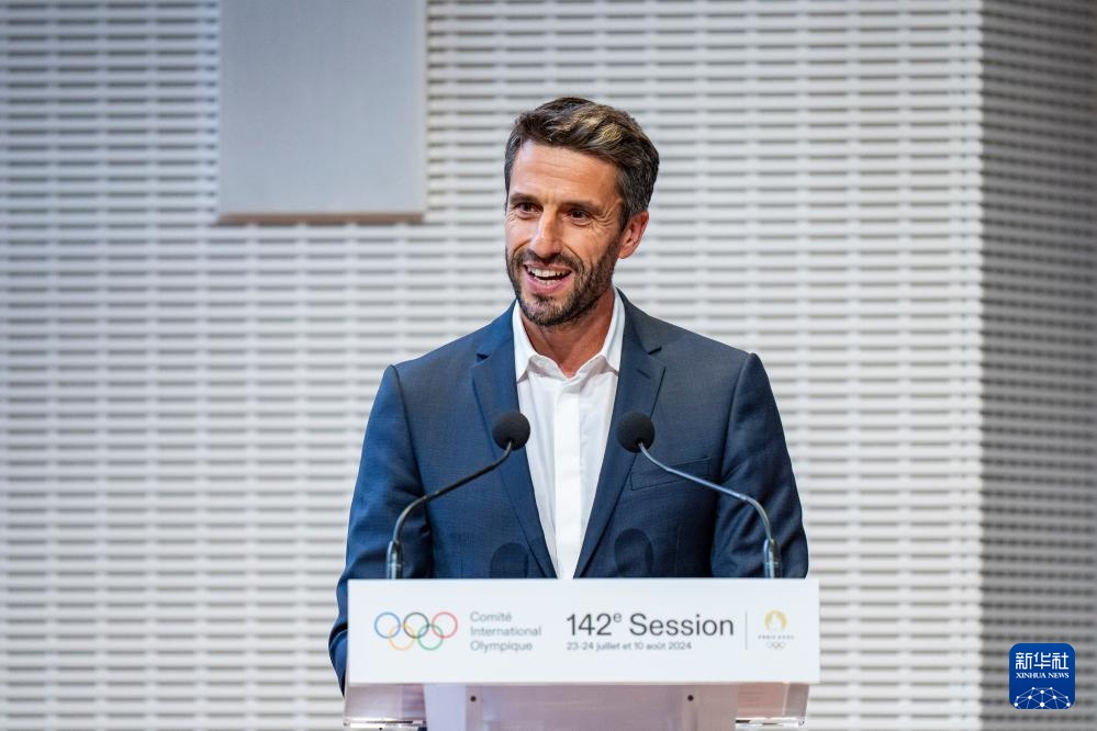 7月22日,巴黎奥组委主席埃斯坦盖在开幕式上发言。新华社记者 孙非 摄