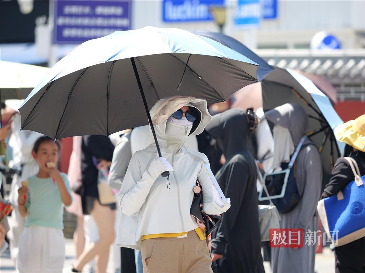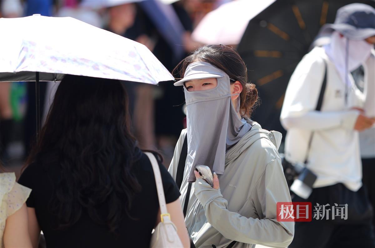 武汉市气象台7月23日6时34分发布高温橙色预警信号:预计今天白天,武汉大部街道(乡镇)最高气温将升至37℃~39℃,部分地区将超过40℃,请注意防范。面对热辣滚烫的天气,市民们纷纷采取应对措施,出行时防晒装备一应俱全:遮阳帽、太阳镜、防晒衣成为标配,力求在炎炎夏日中保持清凉。