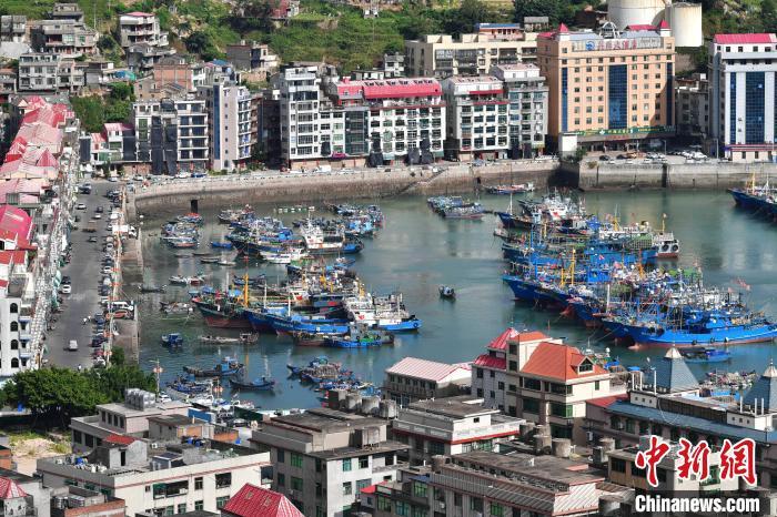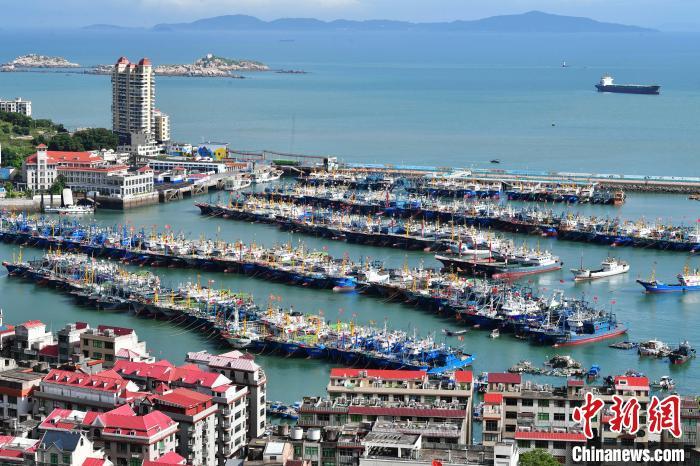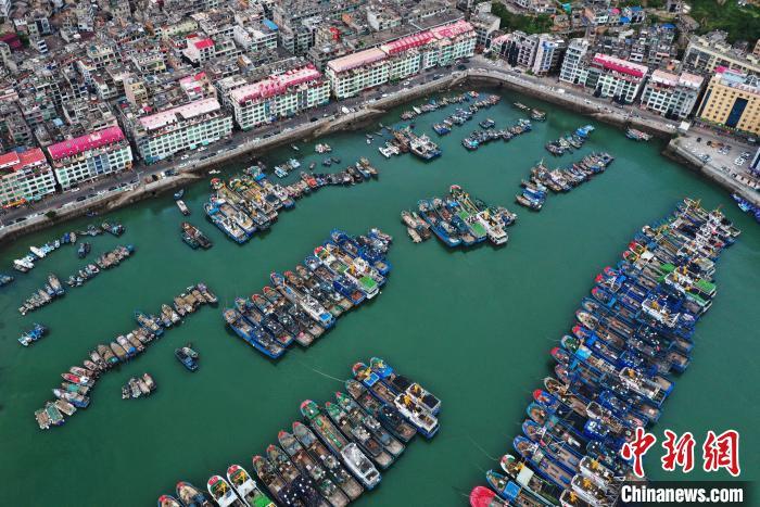 7月23日,渔船在福州市连江县黄岐国家中心渔港内避风。今年第3号台风“格美”体积庞大、强度强,将正面袭击福建,带来严重风雨影响。据福建省气象台预计,“格美”将以每小时20公里左右的速度向偏北转西北方向移动,强度逐渐增强,最强可达强台风级或超强台风级,24日夜间在台湾省中北部沿海登陆,之后穿过台湾省,将于25日下午到傍晚在福建中北部沿海登陆。根据福建省防汛办的部署安排,24日9时前,福建全省沿海养殖渔排的老弱妇幼人员务必全部撤离上岸;24日12时前,位于闽东、闽中、闽南、闽外渔场和钓鱼岛海域作业的渔船务必全部就近到港避风、船上人员撤离上岸,泉州及以北沿海养殖渔排的劳动力人员务必全部撤离上岸。中新社记者 张斌 摄