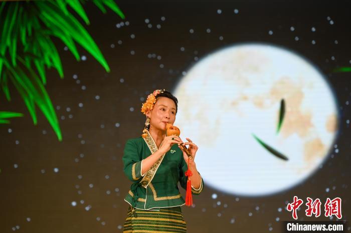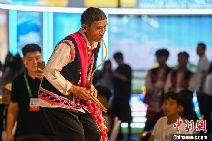 7月23日,非遗展演葫芦丝独奏《月光下的凤尾竹》。当日,为期6天的第8届中国—南亚博览会在云南省昆明市开幕。文化旅游体育馆内各参展商带来异彩纷呈的非遗舞蹈、非遗技艺展示吸引观众前来参观、体验。中新社记者 李嘉娴 摄