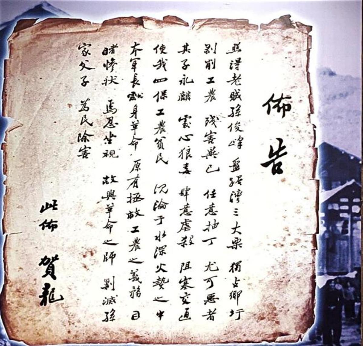 贺龙亲笔题写围歼剿灭五峰团防孙俊峰的布告