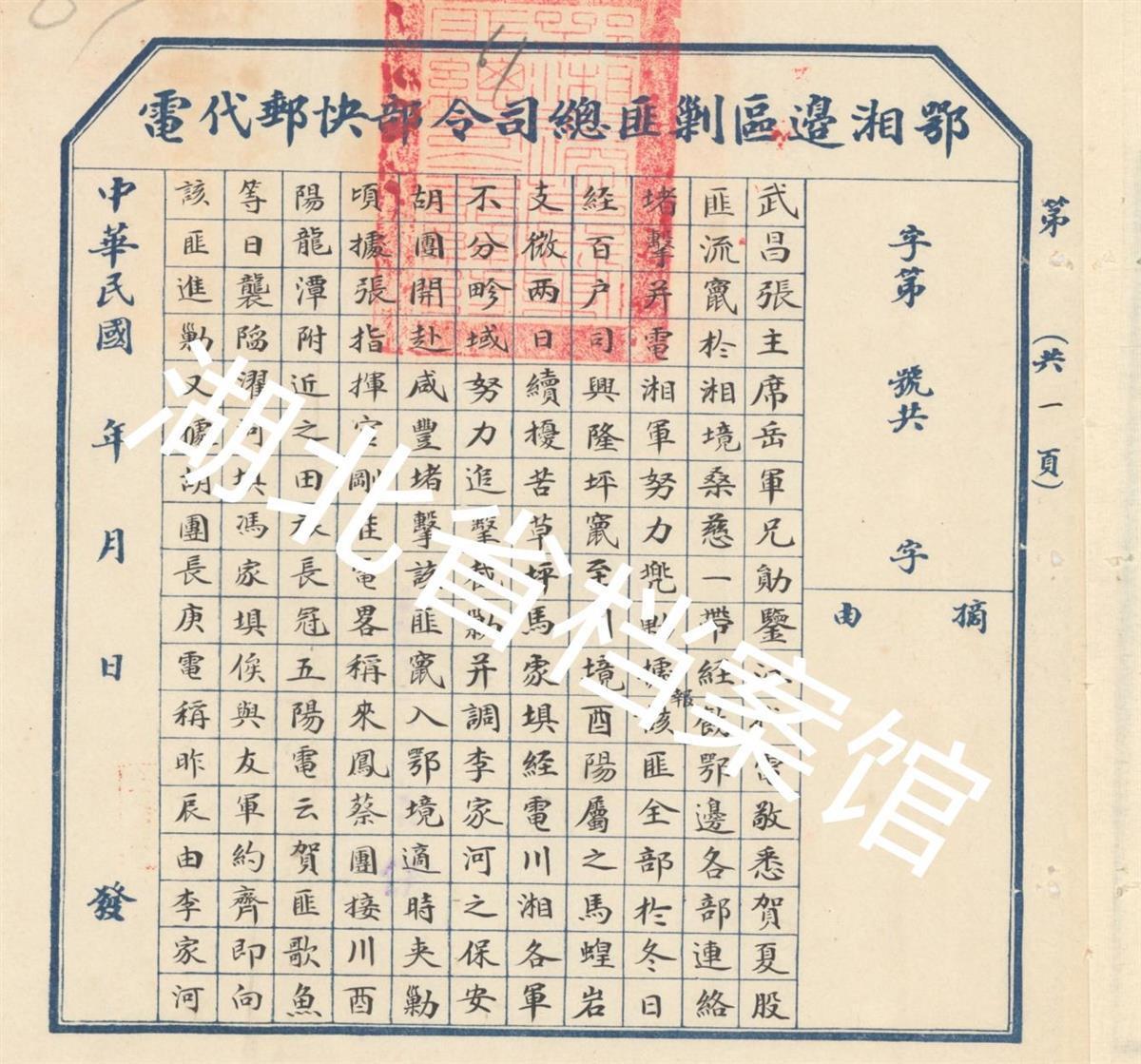 徐源泉“追剿”湘鄂边红军的快邮代电