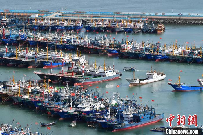7月23日,渔船在福州市连江县黄岐国家中心渔港内避风。今年第3号台风“格美”体积庞大、强度强,将正面袭击福建,带来严重风雨影响。据福建省气象台预计,“格美”将于25日下午到傍晚在福建中北部沿海登陆。中新网记者张斌摄