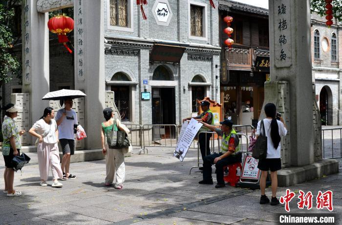 7月24日,受超强台风“格美”影响,福州三坊七巷景区暂时关闭,工作人员劝导游客返回。记者从福州市文化和旅游局获悉,福州全市滨海景区景点于24日12时前全部闭园,非滨海景区景点最迟于24日17时前全部关闭。中新社记者 吕明 摄