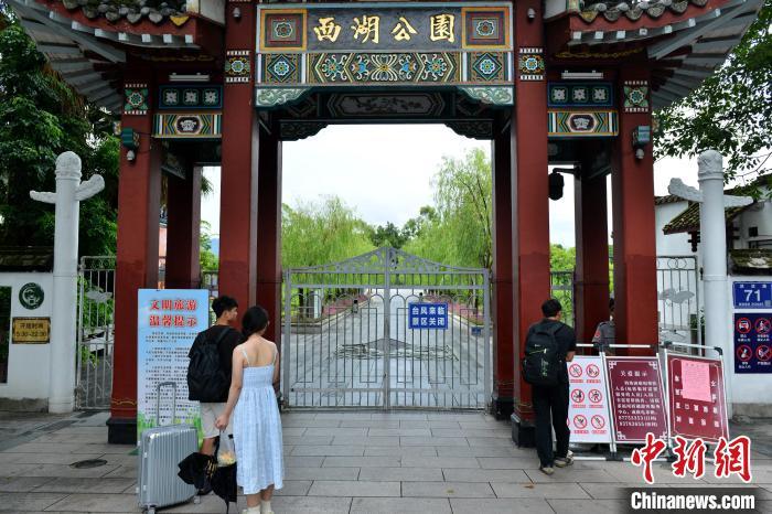 7月24日,受超强台风“格美”影响,福州西湖公园暂时关闭。记者从福州市文化和旅游局获悉,福州全市滨海景区景点于24日12时前全部闭园,非滨海景区景点最迟于24日17时前全部关闭。中新社记者 吕明 摄