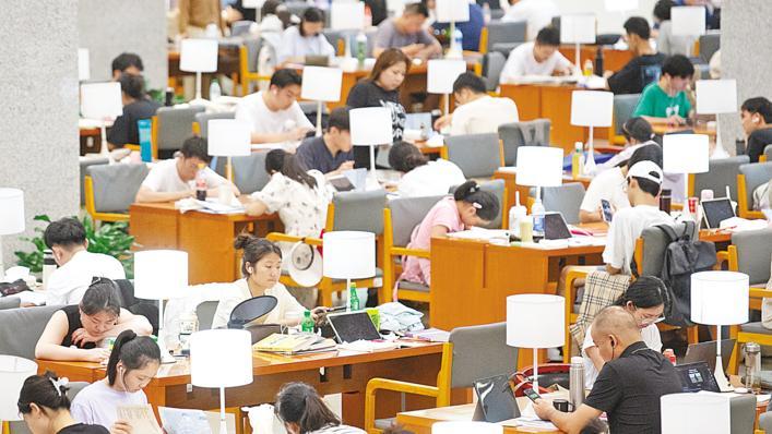 “最近天气炎热,入馆的市民明显变多。工作日每天有1万名读者,周末每天有约2万名读者,相比6月份,人流量增长了约50%。”省图书馆工作人员王俪颖说。