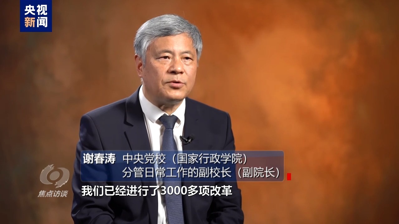 中央党校(国家行政学院)分管日常工作的副校长(副院长) 谢春涛:党的十八大以来,我们已经进行了3000多项改革,这次二十届三中全会又确定了300多项改革。过去这十多年来,我们为什么能够改得成?为什么能够改得好?为什么我们敢改?就是因为有中国共产党的坚强领导,有党中央的集中统一领导,尤其是有习近平总书记领航掌舵,有习近平新时代中国特色社会主义思想科学指引。