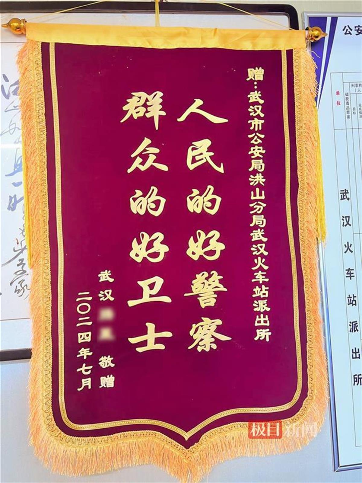 7月19日,武汉火车站派出所向受害公司归还了被盗物品,梅先生代表公司将一面写有“人民的好警察、群众的好卫士”的锦旗送到了办案民警罗文修、贺世洲、肖银的手上。