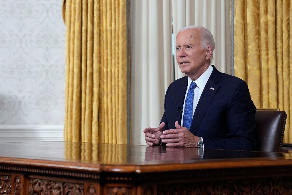 【环球时报驻美国特约记者 冯亚仁 环球时报特约记者 王从】当地时间24日晚,美国总统拜登在白宫椭圆形办公室向全国发表讲话。这是拜登宣布结束竞选连任后的首次演讲。“拜登称退出2024年总统选举是为了捍卫民主。”美国有线电视新闻网(CNN)以此为题报道称,拜登在演讲中表示,他“将把接力棒传给新一代”。