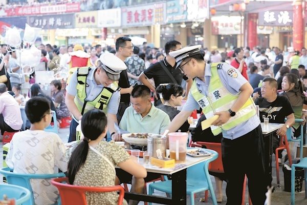 松滋民警在夜市开展巡逻宣防 通讯员供图