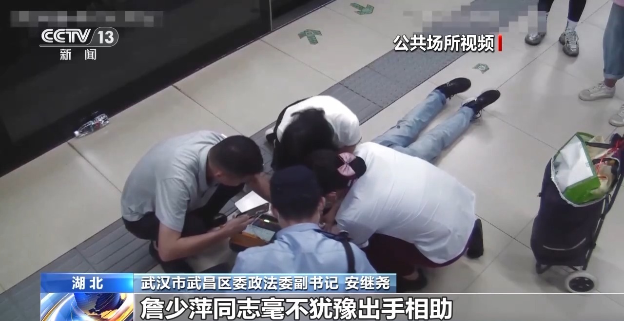 这是发生在6月6日下午武汉地铁4号线的惊险一幕,就在几分钟前,一位老人在列车内心跳骤停突然倒地。同一车厢的詹少萍见状赶忙上前查看老人的身体情况。