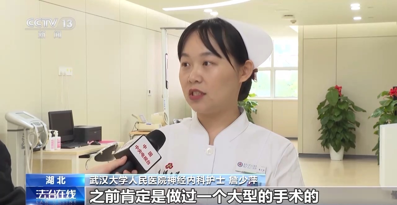 武汉大学人民医院神经内科护士 詹少萍:给患者的衣服解开贴电极片的时候,发现患者的胸前有很长的一个疤痕,这种患者很明显是之前做过一个大型手术。