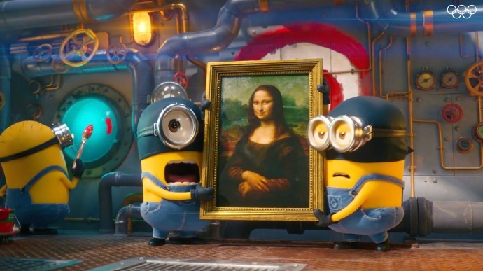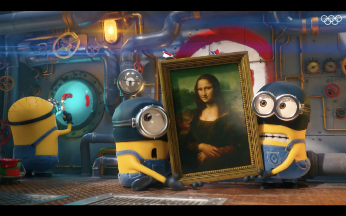 巴黎奥运会开幕式短片,小黄人化身呆萌奥运会运动员,还顺便找到了“蒙娜丽莎的微笑”。