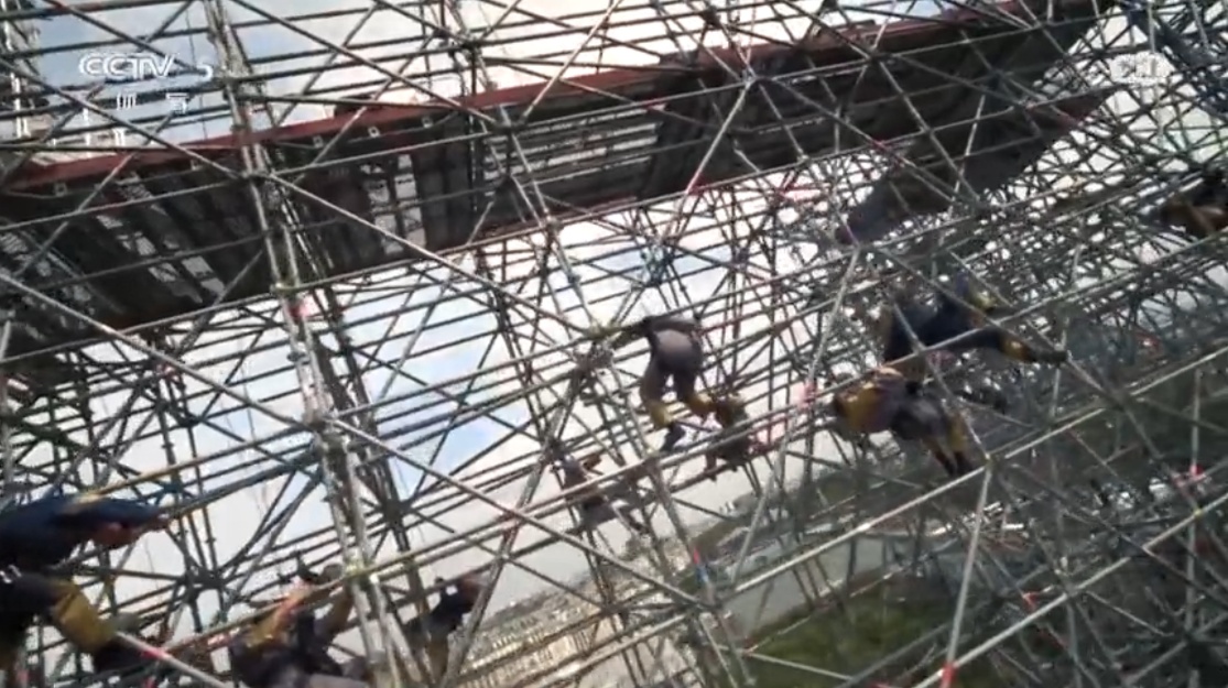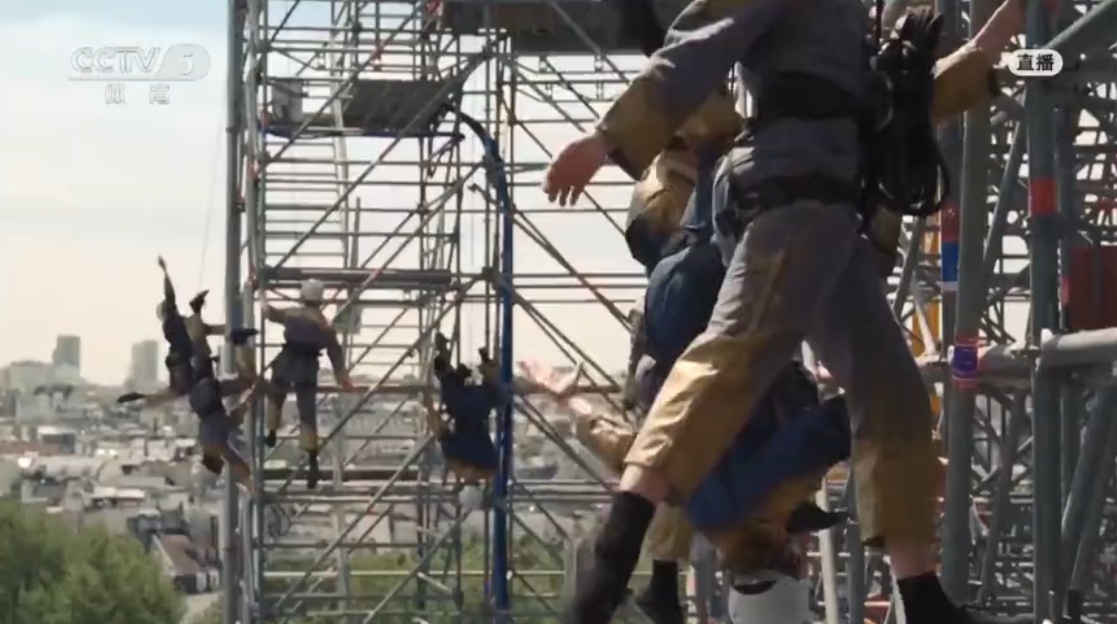 在修缮巴黎圣母院的脚手架上跳舞