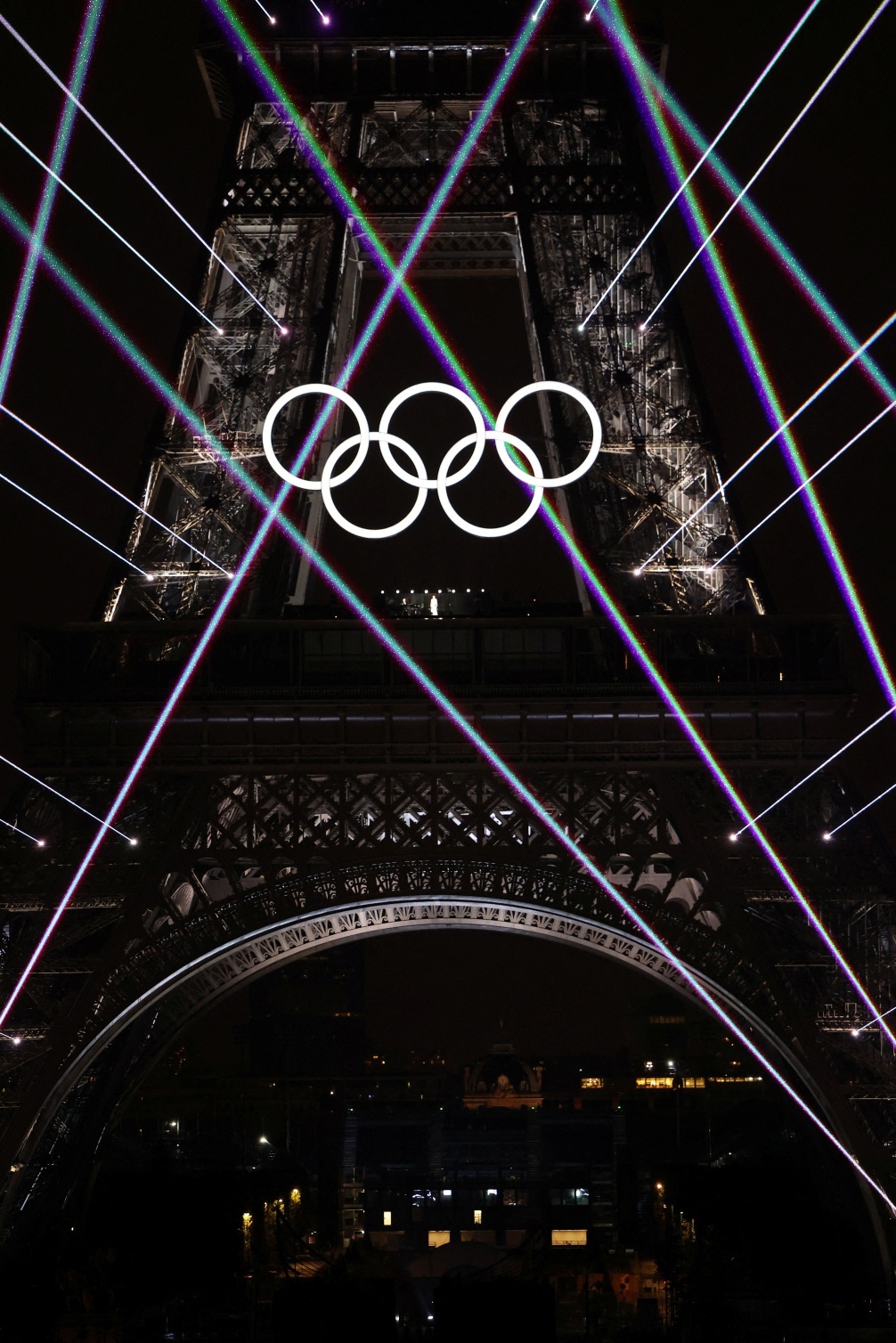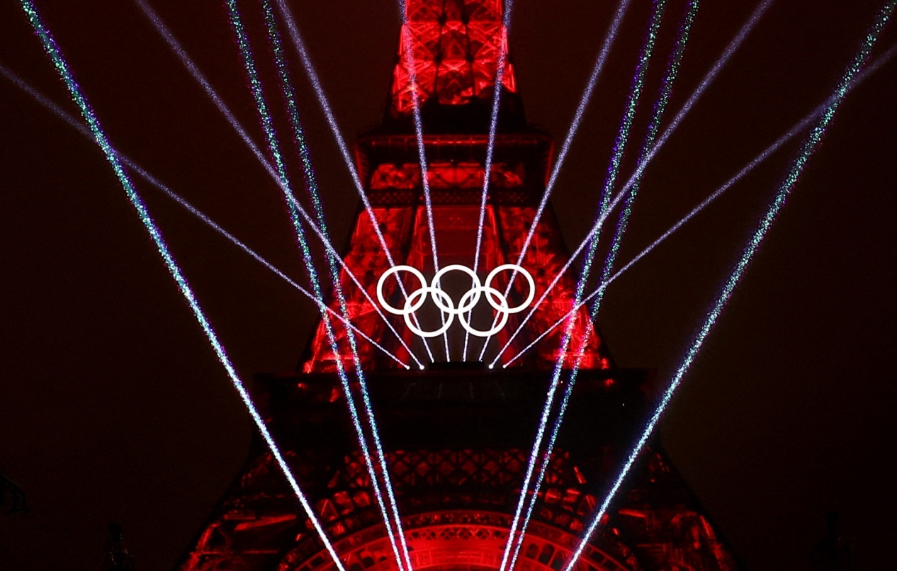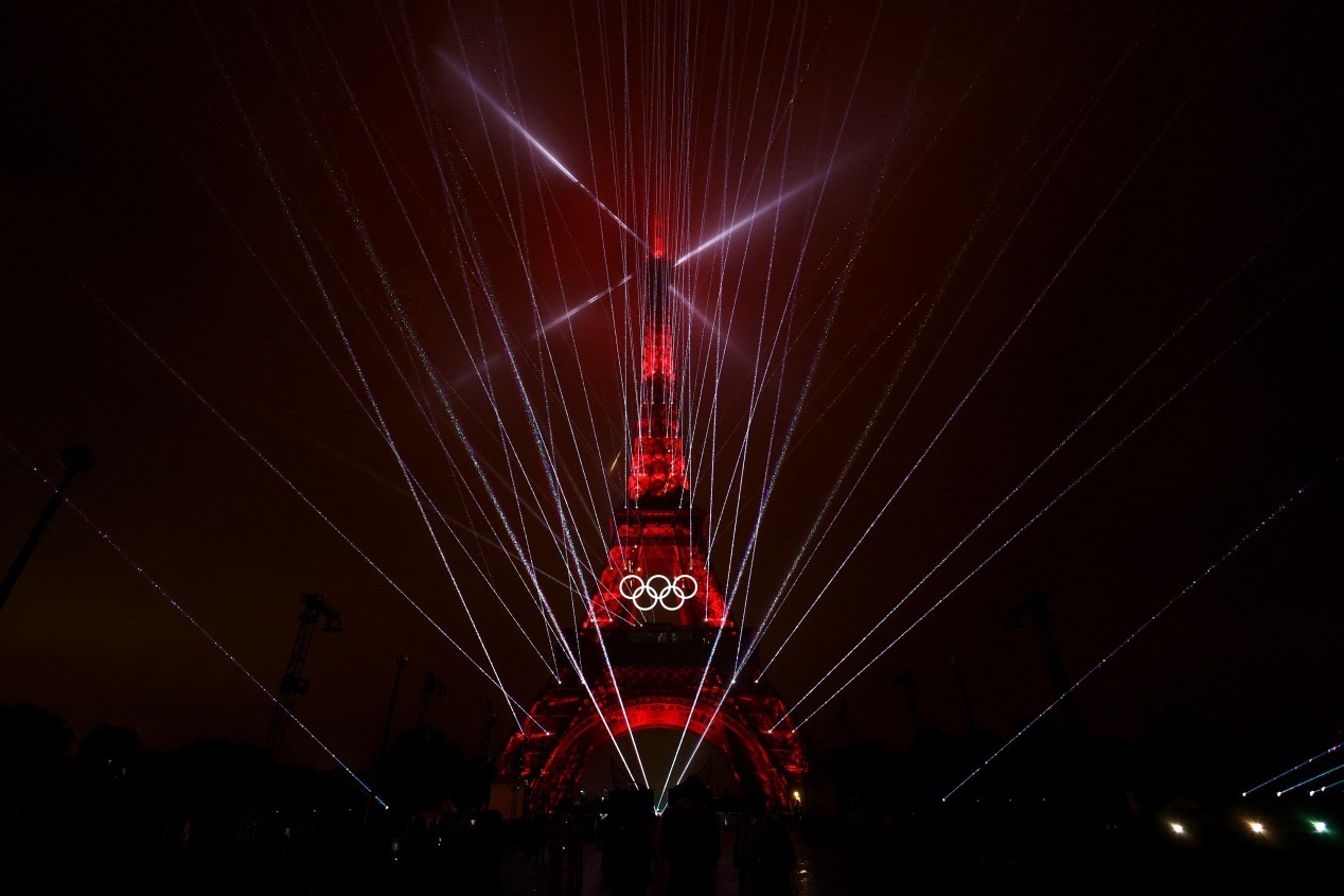 奥运五环闪耀埃菲尔铁塔