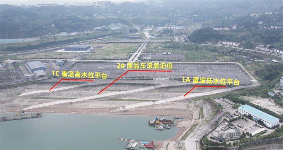 据悉,宜昌秭归港商品车滚装泊位位于三峡大坝上游8公里处,是秭归港茅坪二期工程(拥有5个3000吨级泊位)的重要组成部分。一个斜坡道泊位,可满足三峡库区142米—175米不同水位期使用,超大型停车场可同时容纳逾3000辆小轿车,设计年通过能力15.4万辆。