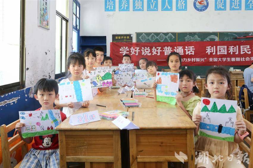 湖北日报讯(记者韩晓玲、通讯员李锐欣)“我是中国娃,爱说普通话。”“学好普通话,沟通你我他。”“我是小小推普员。”稚嫩童声从课堂中传出。原来,这是国家语言文字推广基地(华中师范大学)“推普助力乡村振兴”研究生实践队在暑假里为孩子们举办的“小小推普员”课堂。