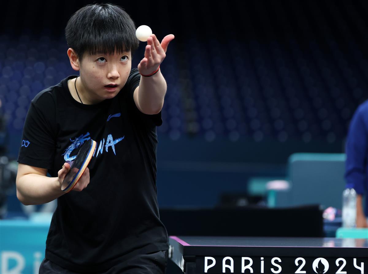 中国乒乓球选手孙颖莎在训练(新华社图)