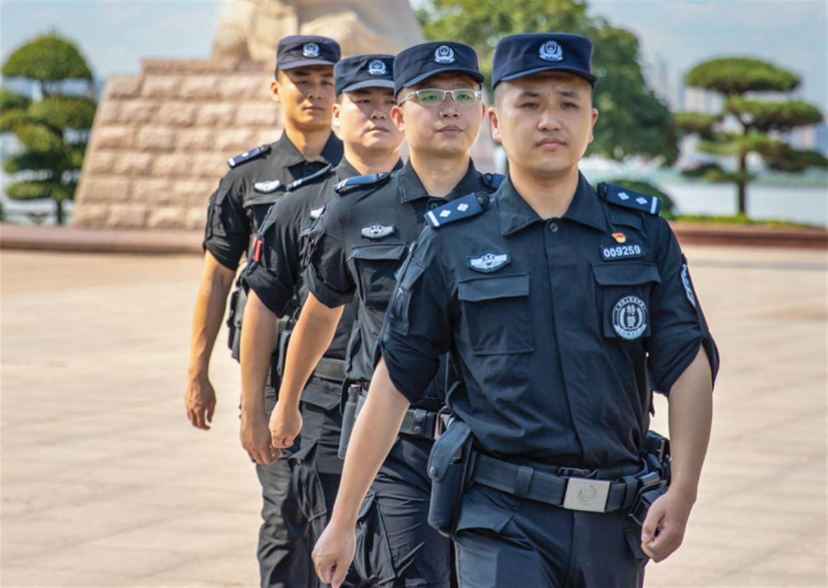 “南浦路是我们日常巡逻的重要区域,这里也是市民休闲购物的热门地。尽管天气炎热,我们多流一滴汗,群众就多一分安宁。”特警队员涂远高说。10分钟不到,四名队员豆大的汗珠已经从脸上滑落。