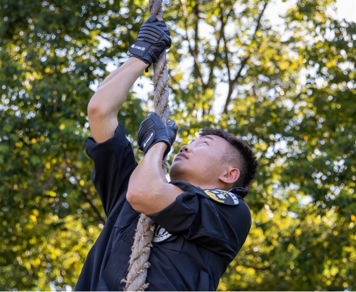“出拳要有力,动作再干练些!”徒手格斗训练环节,带队教官仔细纠正着队员的动作。直拳横踢、拉肘别臂、踹腿锁喉……一个个动作力求果断利落。高温天气下的耐力和爆发力训练,是特警队员们必须经受的“烤”验。
