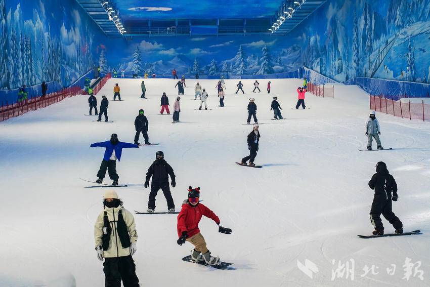 据悉,武汉冰雪中心位于武汉市汉阳区四新生态新城核心区,规划为10万方运动主题商业综合体,总投资超10亿元,是武汉中心城区最大的室内滑雪综合体。近年来,湖北响应国家3亿人滑雪运动休闲的目标,文旅部门与体育部门共同发力,实施“北雪南展”工程,积极推广群众冰雪运动,引导冰雪消费。(湖北日报全媒记者 任勇 通讯员 刘虎成 摄)