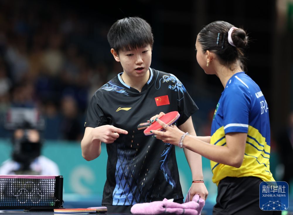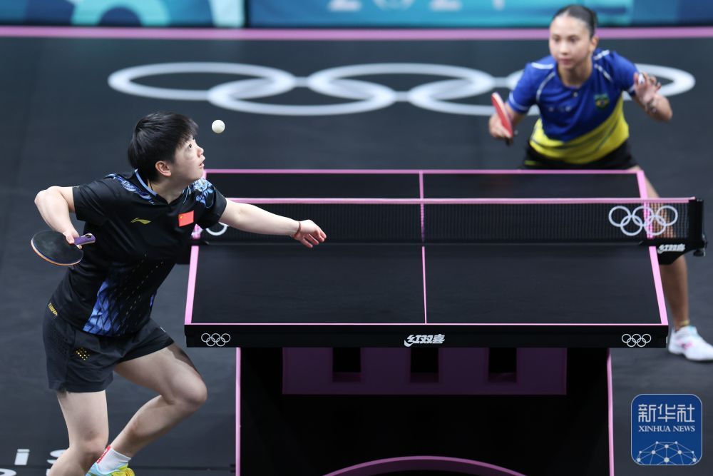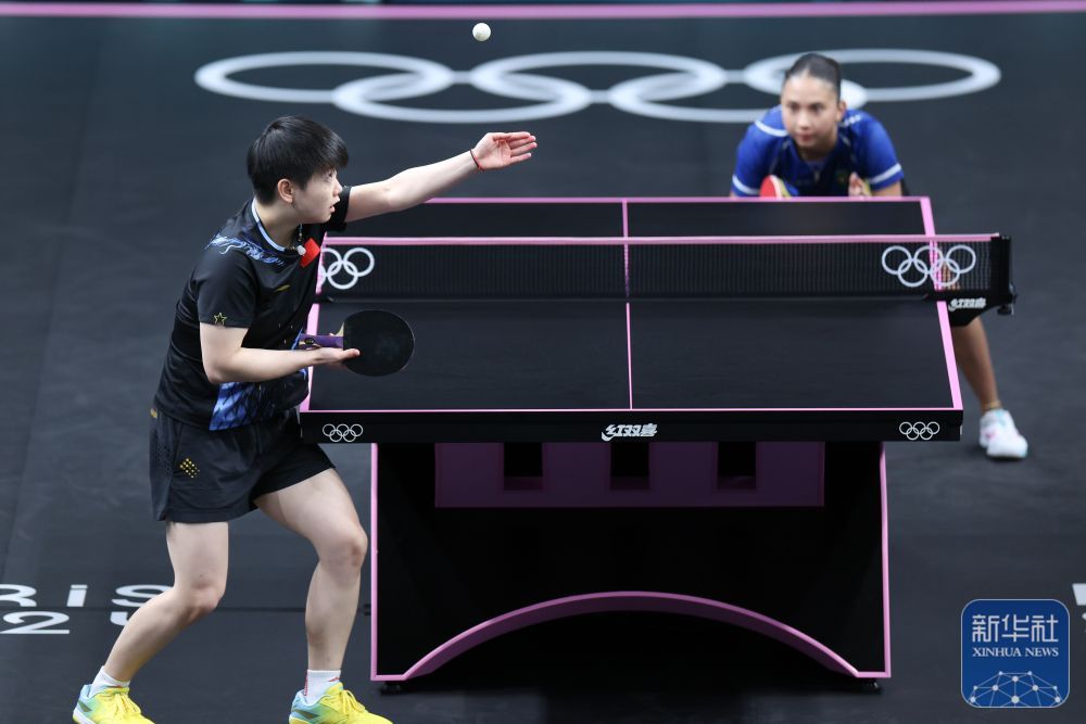 当地时间7月28日,在巴黎奥运会乒乓球女子单打首轮比赛中,中国选手孙颖莎4比0战胜巴西选手高桥·朱丽叶,晋级32强。