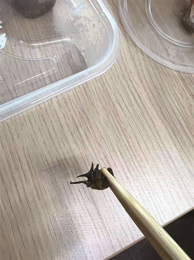 盒饭中吃出疑似福寿螺