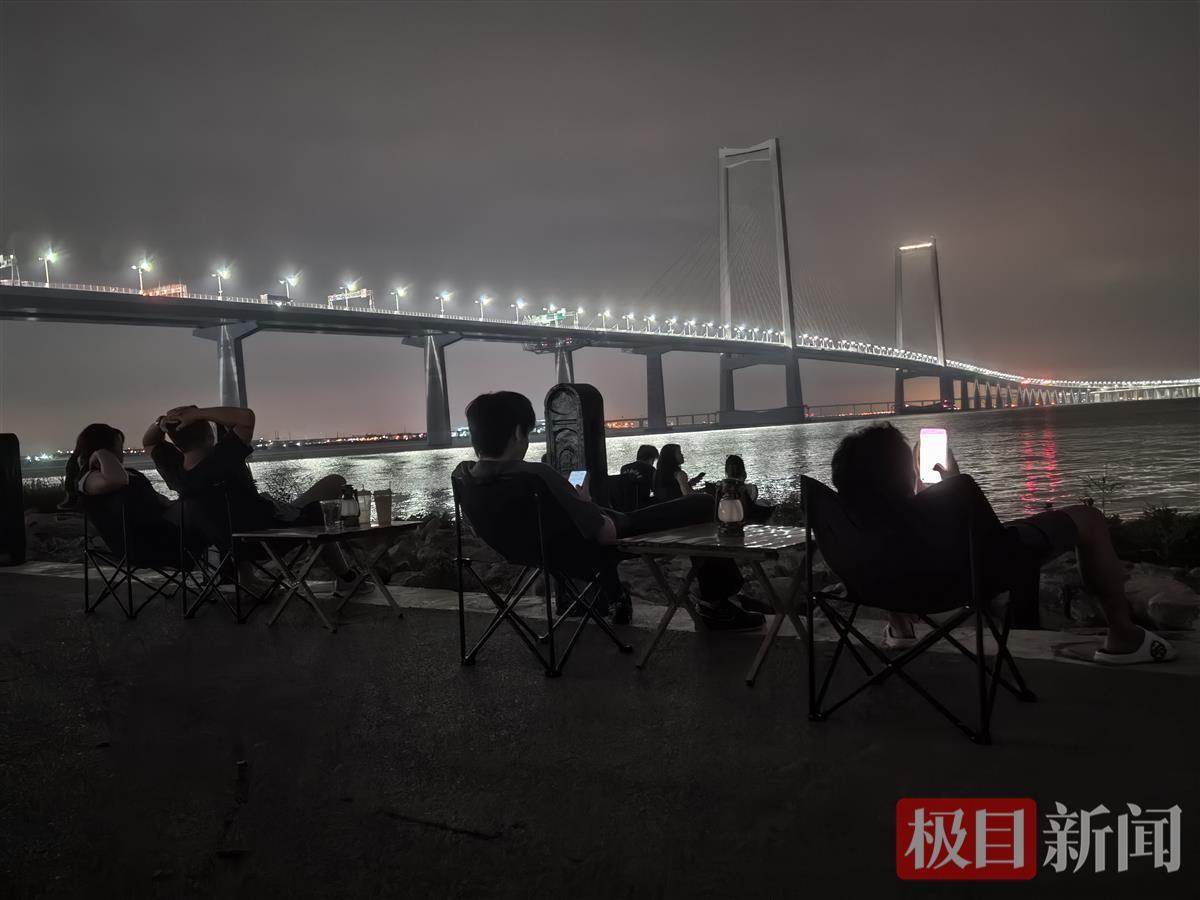 26日凌晨2时,深中大桥下马鞍岛的海岸线上,已经有不少人聚集。有过来等待日出的,也有不少商家拉起彩灯,摆摊卖饮品,卖小吃的。更有三五成群的家人和朋友,在海岸上摆起了折叠桌椅,煮上了火锅,一边吃东西一边等待日出。该日出打卡地曾一度登上微博热搜。