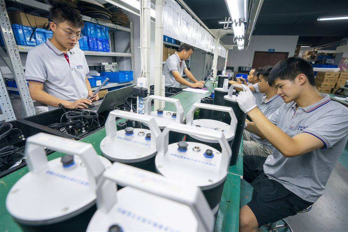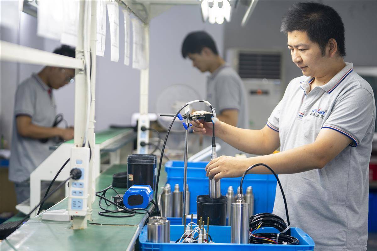 7月25日,位于光谷的武汉新烽光电股份有限公司,员工在测试、生产各型流量、水位、水质智能监测设备传感器。该公司是一家专业从事智慧城市水系统信息化的高新技术企业。2023年,新烽光电生产智慧水文产品2万余套,产值达2.5亿元。公司与多所高校广泛合作,自主研发多个平台,实现在智慧海绵城市、智慧排水、智慧生态、智慧水利、流域管控、智慧排水6个领域的应用。产品中的投入式超声波流量监测仪、非接触式排水管网流量水位监测设备、一体化内涝监测水位计,为城市排水防涝、防汛工作提供了强有力支持。这些智能化设备在武汉、上海、广州、深圳、杭州等150多个城市的15000多个监测站点得到广泛应用,有效提升了城市排水管理的智能化水平,保障人民生命财产安全。