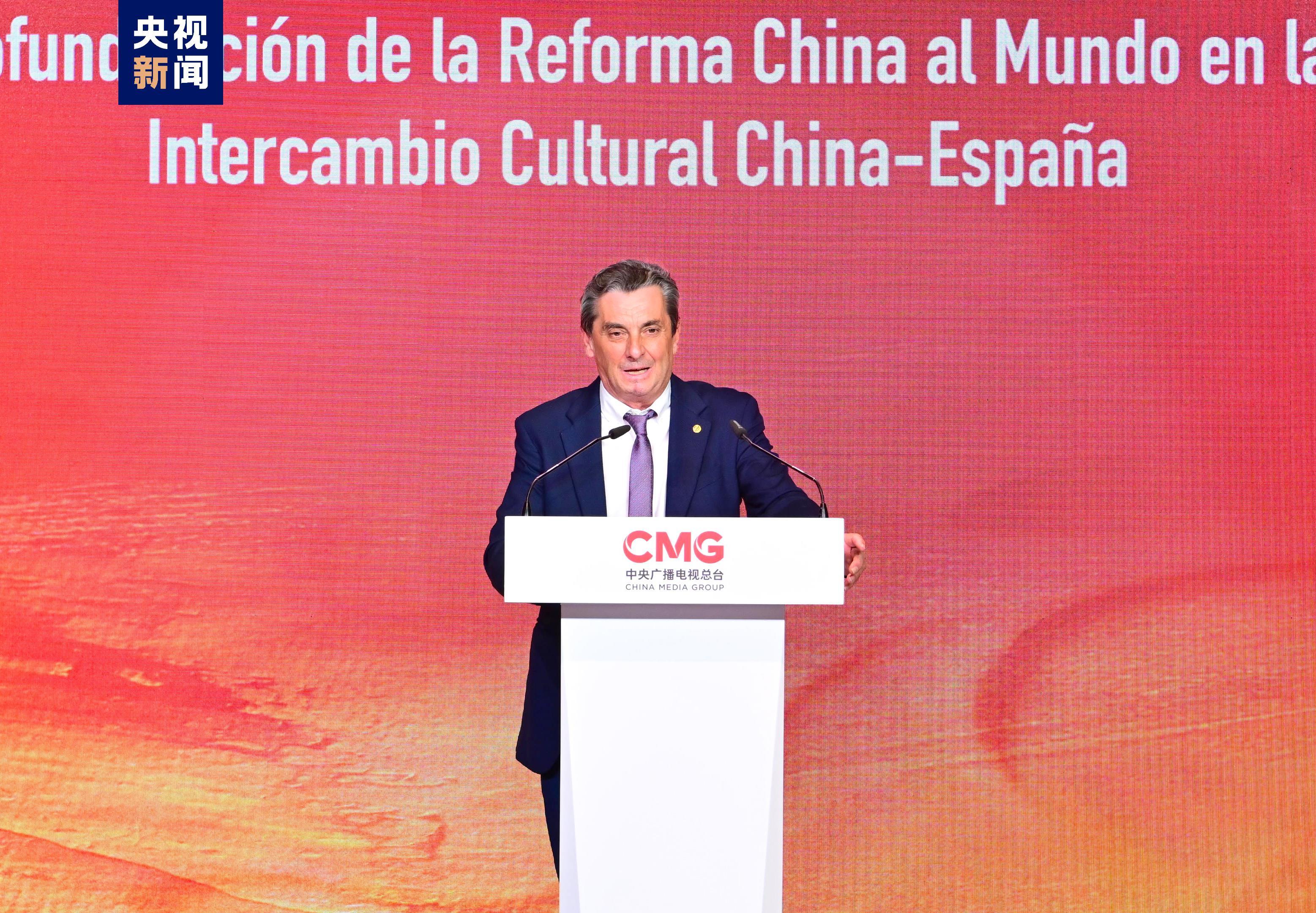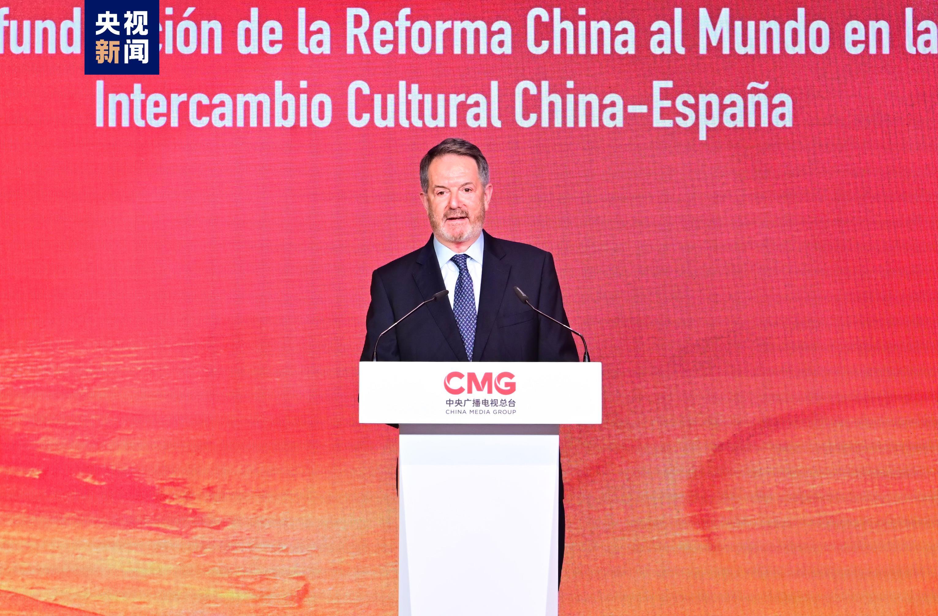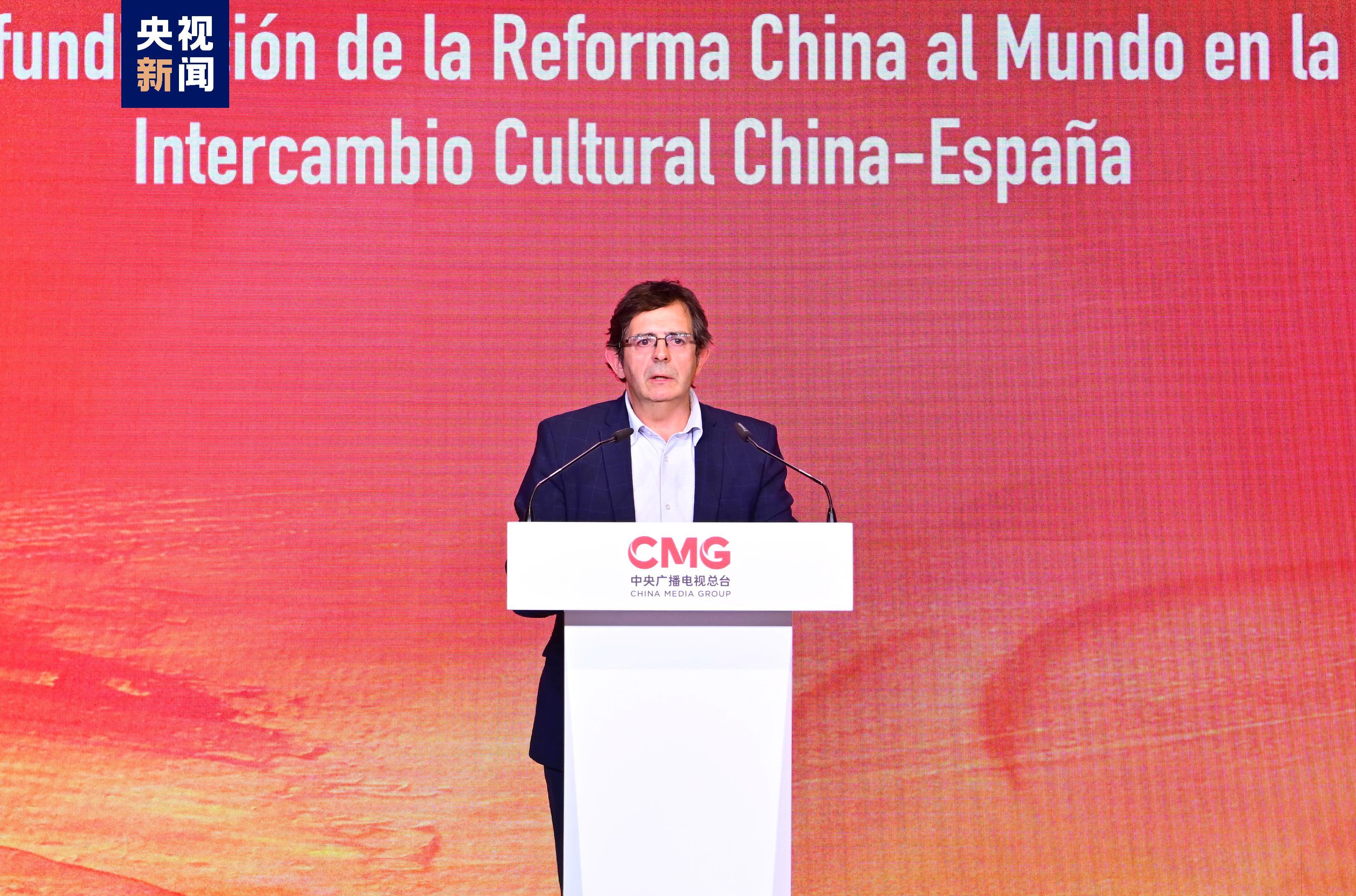 卡莫斯指出,建交半个世纪以来,西中关系始终保持高水平发展。近年来,两国在文化、媒体、艺术等领域合作成果颇丰。西班牙电影积极参加中国各大电影节,双方大量优秀影视作品的广泛传播跨越距离、打破隔阂,使两国民众加深了对彼此文化的了解和喜爱。相信今天的活动将是一剂助燃剂,通过高水平的人文交流和深化合作,进一步拉近两国人民的距离,推动西中双边关系行稳致远。期待与中央广播电视总台以此为契机,拓宽合作领域,丰富合作形式,在传播两国悠久历史文化、社会发展、风土人情等方面继续保持紧密合作,筑牢两国人民友谊之桥,推动世界文明对话交流,为应对人类共同挑战作出积极贡献。