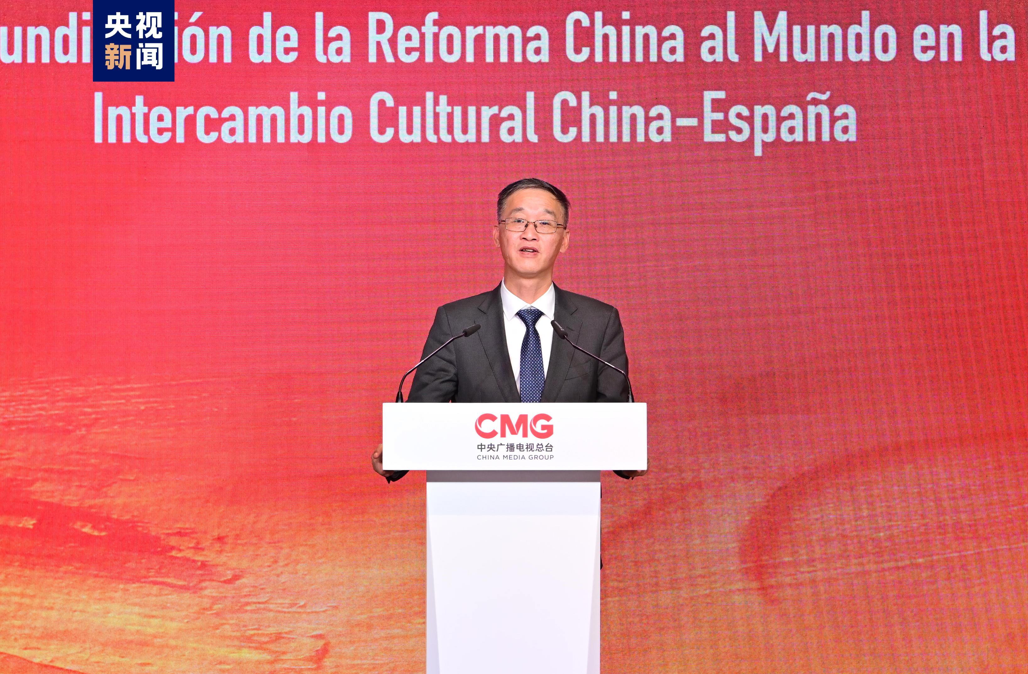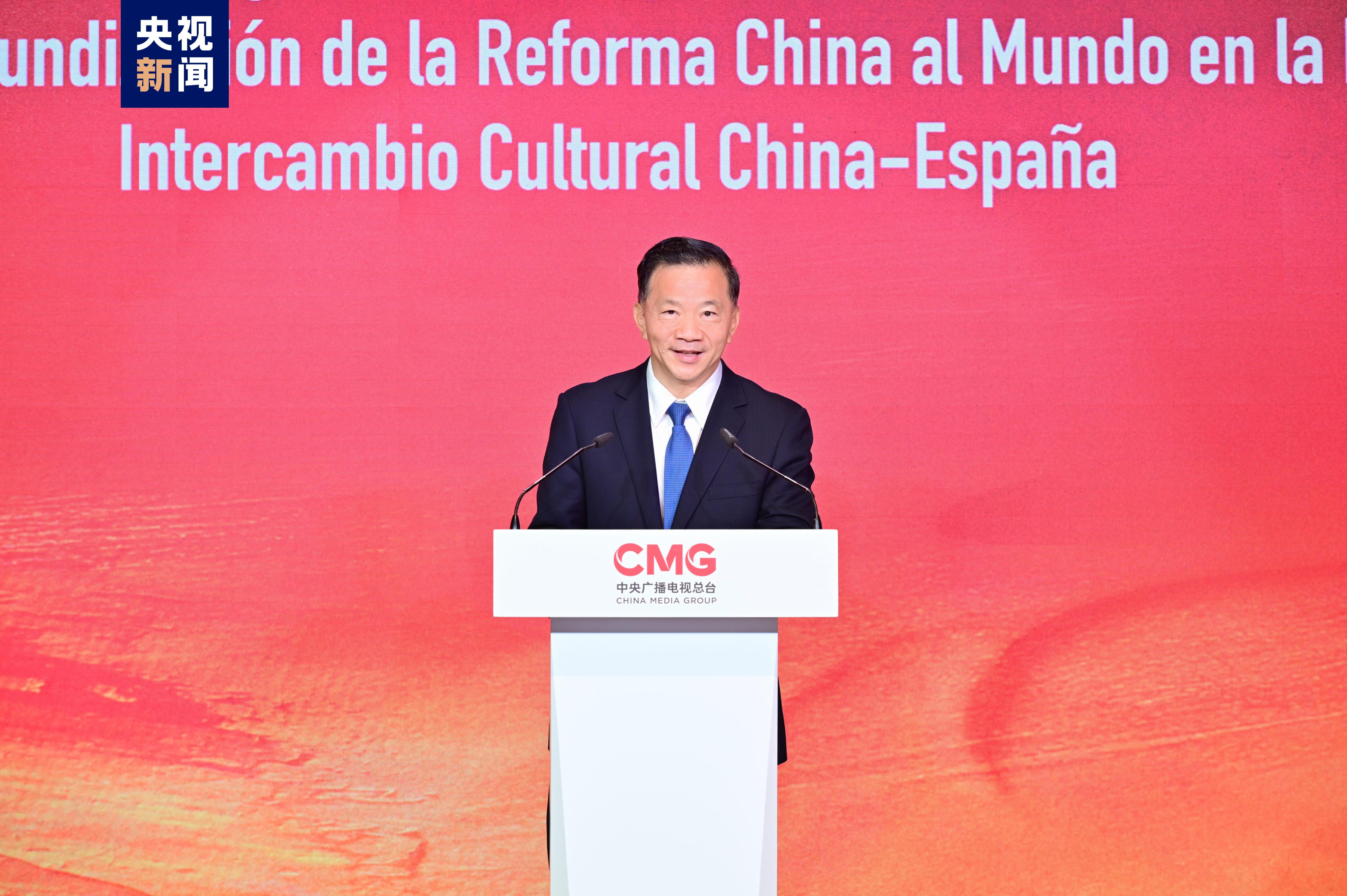 慎海雄说,中国和西班牙虽相隔万里,但文明的交流互鉴从未间断。作为国际一流新型主流媒体,中央广播电视总台始终致力于推动中西两国人文交流和人民相知相亲。今天与西班牙朋友们分享介绍“中国式现代化”的文化礼盒,琳琅满目的作品讲述中国博大精深的文化,回顾中西两国的渊源与友谊,反映中国高质量发展的火热实践,也记录中西多领域合作的丰硕成果。我们期待以丰厚的资源、精彩的创意和现代科技,与西班牙同行深度合作,为两国人民奉献更丰盈的精神盛宴,共同打造更具创新力的文化创意产品,促进中西共享新时代深化改革的世界机遇,推动中西文化美美与共、共同繁荣。