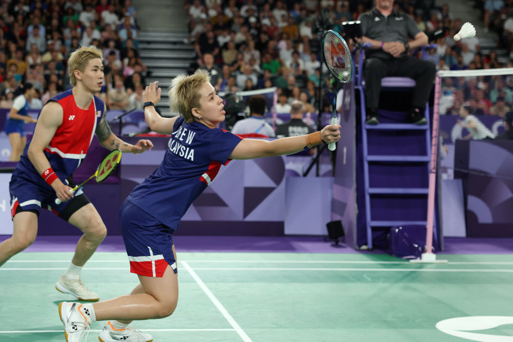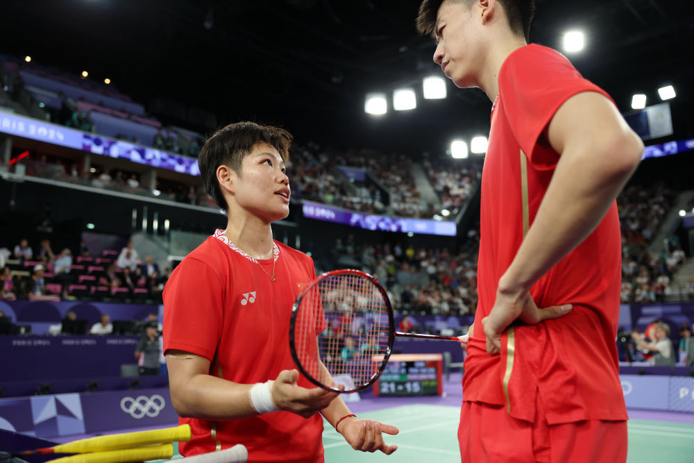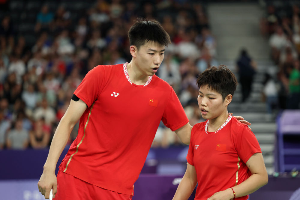 7月29日,在巴黎奥运会羽毛球项目混合双打小组赛D组比赛中,中国组合冯彦哲/黄东萍1比2不敌马来西亚组合陈堂杰/杜颐沩。