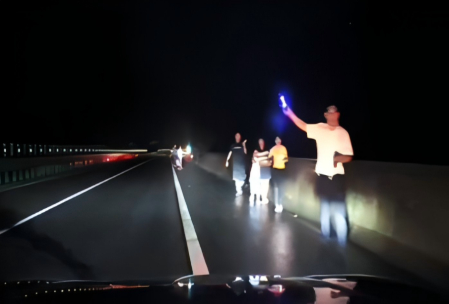 后来,被拦停的司机也加入到救人队伍中。就这样,停下的车逐渐增多,大家把双闪打开,将所有车道占满,为黑夜照亮一段生命之光。