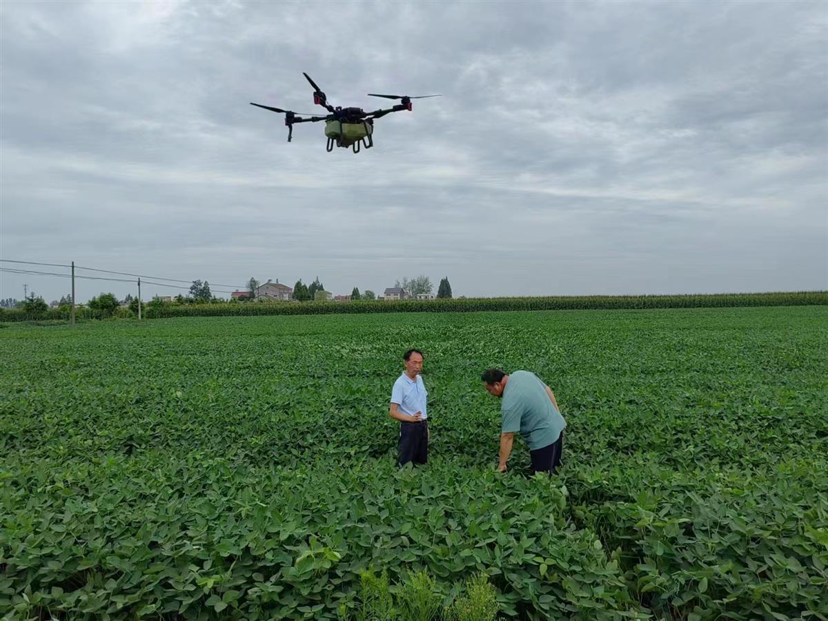 “通过北斗系统的导航和数字测量技术,无人机能够实现厘米级的精度定位,确保作业的准确性和效率。”钟祥市农业技术推广中心粮油站站长孙科告诉极目新闻记者,钟祥市共播种大豆、玉米共75.7万亩,目前已完成飞防作业约40万亩。