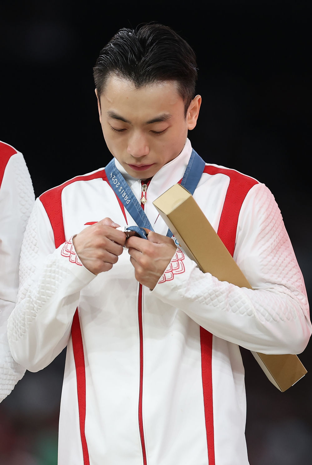 7月29日,中国队选手邹敬园在颁奖仪式上。新华社记者 曹灿 摄